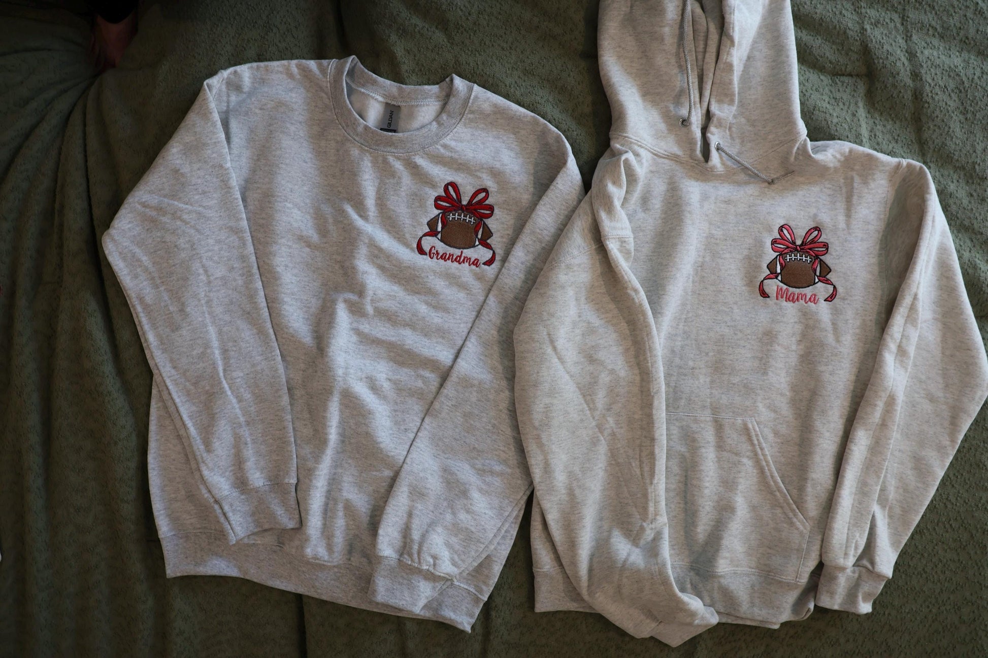 Custom Embroidered Football Bow Crewneck Sweatshirt