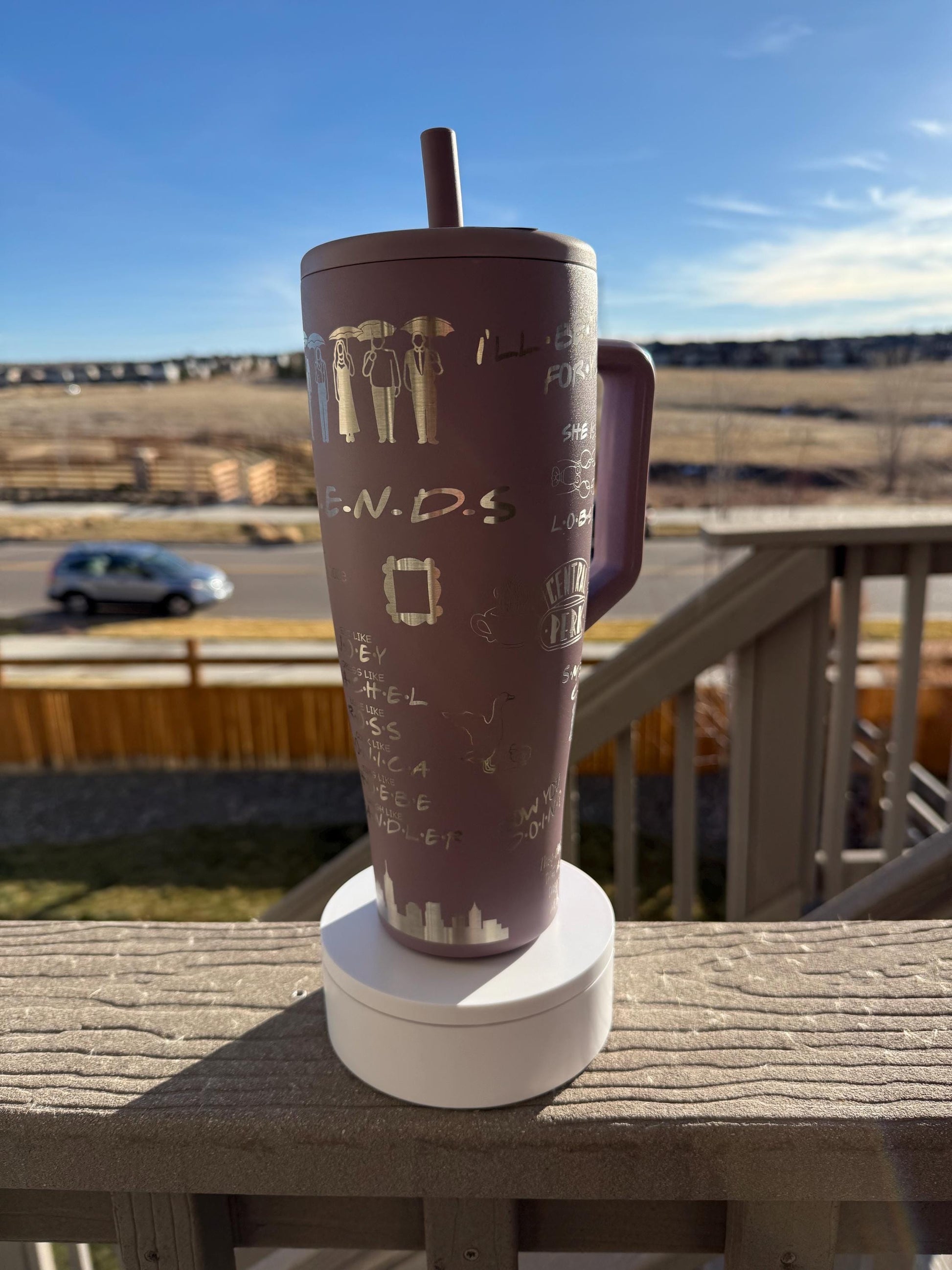 Enjoy spending time with your friends with this 40 oz Black Brumate Era Tumbler with a I’ll Be There For You wrap engraved on it. Since the design is laser engraved, there should be no fading over time. I will source the cup and have it shipped to you within 24-48 hours dependent on holiday orders and mail carrier times. Arrival time is dependent upon shipping chosen at check out. I stock Stanley dupes as well at a lower price point. Other Brumate colors available upon request. Please contact me if you are interested in a dupe or a different Brumate color with this wrap or would like to know more information about other designs that are available.