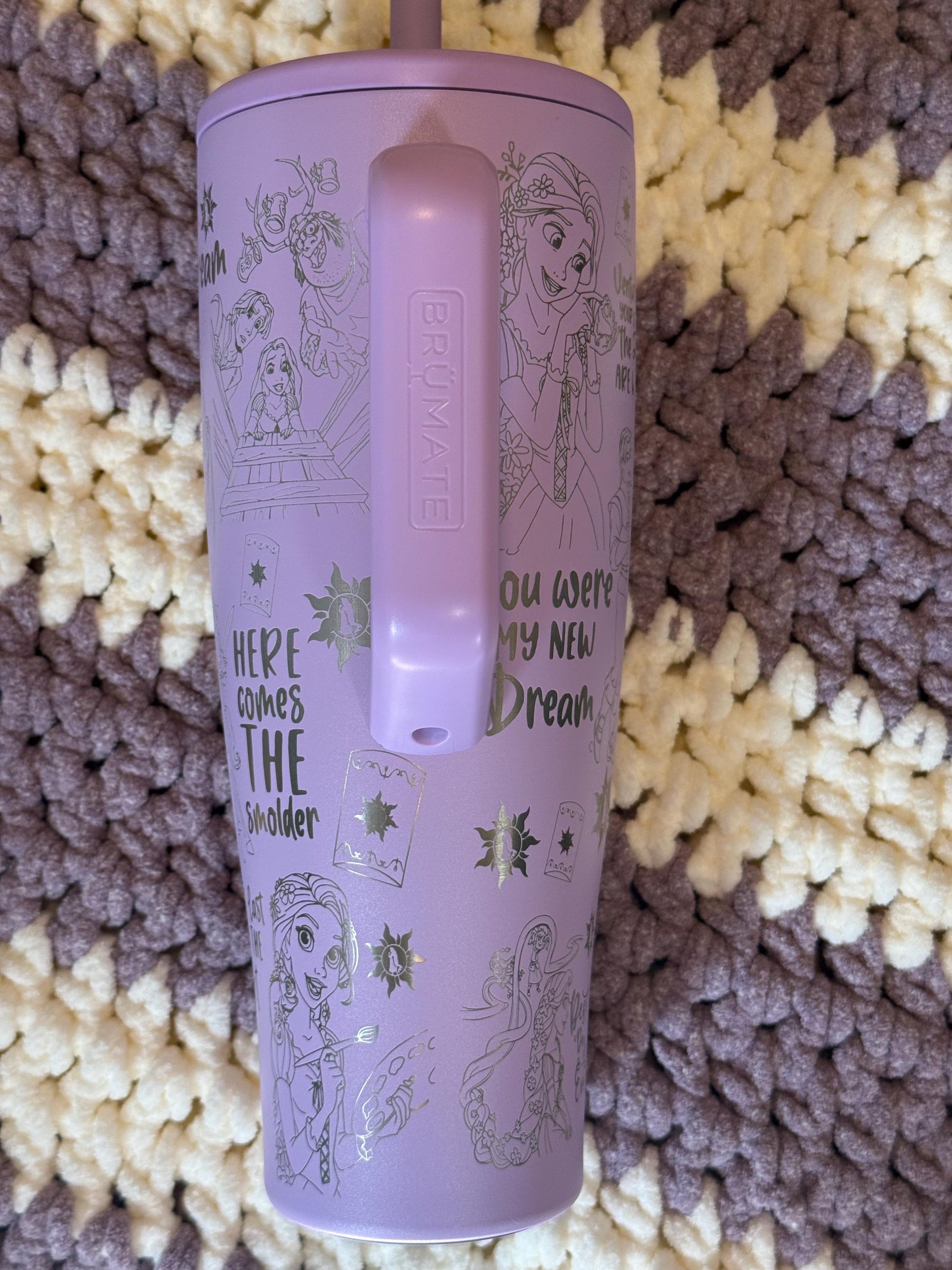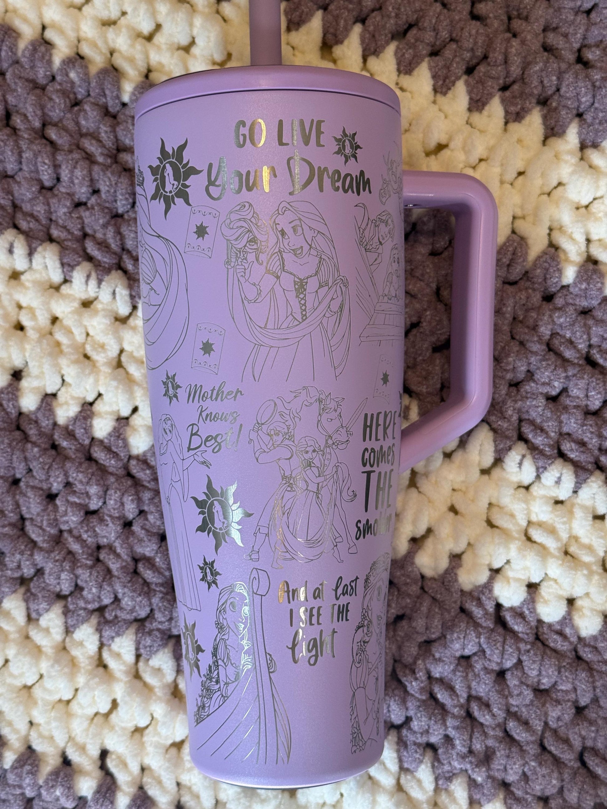 Let your hair down with this 40 oz Lavendar Brumate Era Tumbler with a Tangled inspired wrap engraved on it. Since the design is laser engraved, there should be no fading over time. I will source the cup and have it shipped to you within 24-48 hours dependent on holiday orders and mail carrier times. Arrival time is dependent upon shipping chosen at check out. I stock Stanley dupes as well at a lower price point. Other Brumate colors available upon request. Please contact me if you are interested in a dupe or a different Brumate color with this wrap or would like to know more information about other designs that are available.